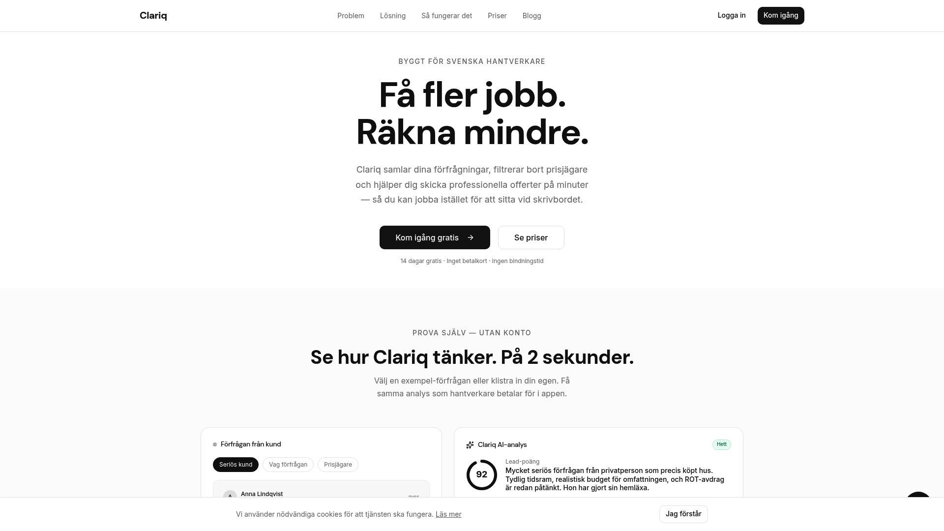 - Clariq – Filtrera förfrågningar och vinn fler jobb | Offertverktyg för hantverkare